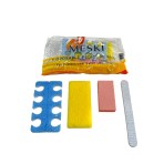 The Pedicure Kit 4 PE by Meski is the ultimate professional solution for achieving flawless pedicures with ease and efficiency. Each kit features essential tools for salon-quality results, including a yellow pumice pad (3.15 in x 1.38 in x 0.47 in), a durable zebra-pattern nail file (5 in, 80/80 grit), an orange buffer (3.54 in x 1.18 in x 0.98 in, 80/100 grit), and a blue-and-white PE toe separator for 4 toes. Made from high-quality, durable materials, this kit ensures long-lasting performance and effective results. Packaged in bulk with 200 kits per carton, it is perfect for salons, spas, and large-scale professional use. Elevate your pedicure services with the Meski Pedicure Kit 4 PE, designed for reliability and excellence.